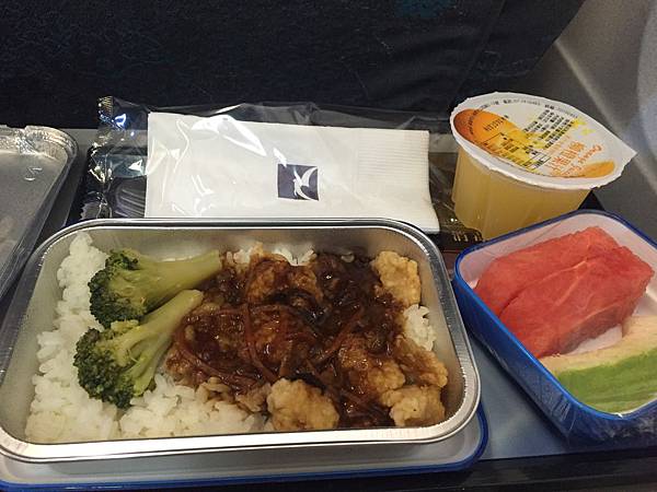 澳航的飛機餐-雞肉飯,表現中等,有水果還有一杯果汁