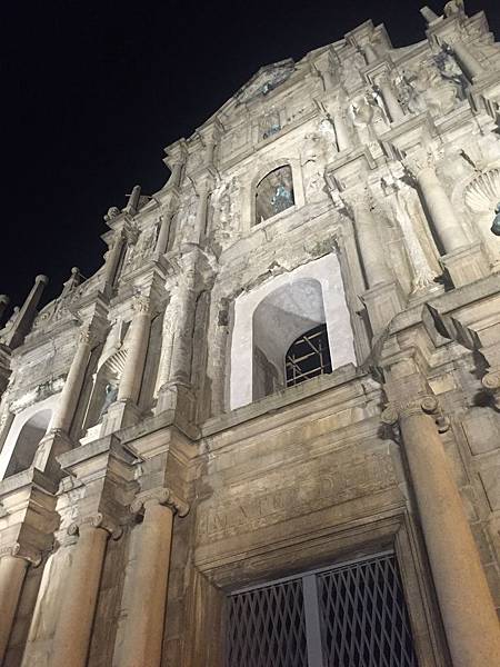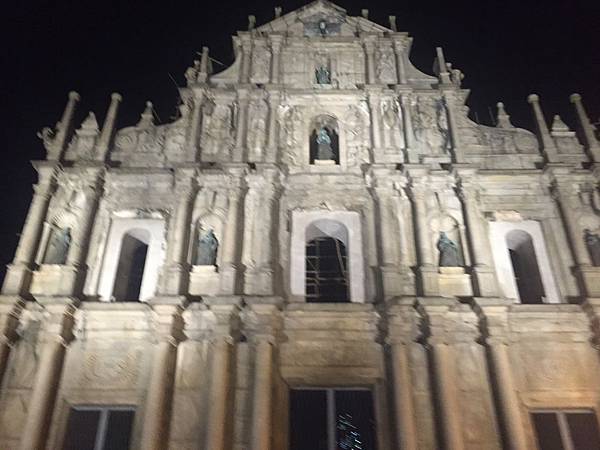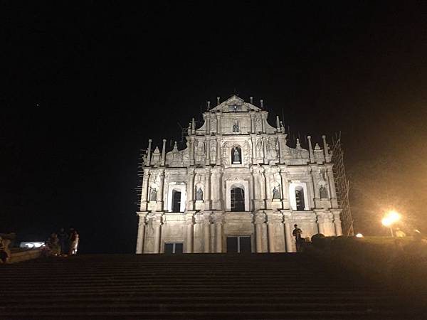 回程的路上經過大三巴就順路來看看夜晚的大三巴,夜晚的大三巴沒什麼觀光客,而是附近居民帶狗狗散步的好地方